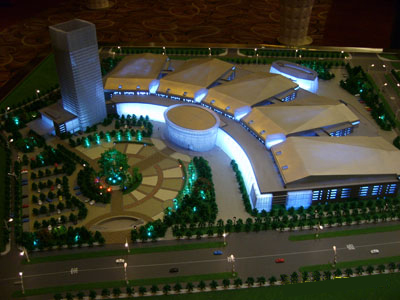 義烏國際博覽中心由會展展館與配套五星級酒店兩個項目組成,總占地面積219畝,總建筑面積296001平方米,概算總投資18億元。其中,會展展館項目總建筑面積240408平方米,單館面積達8900平方米,建成后可提供國際標準展位5256個。展館主體地上兩層,共設標準展廳10個;地下一層設小型展廳和二層停車場。與之相配套的五星級酒店項目總建筑面積55593平方米,建成后可提供356間(套)客房。酒店分地下2層,地上26層,總體高度為120米,計劃于2010年義博會時建成并投入使用。屆時將成為義烏最高的建筑物和浙中地區(qū)檔次最高的五星級會展配套酒店。