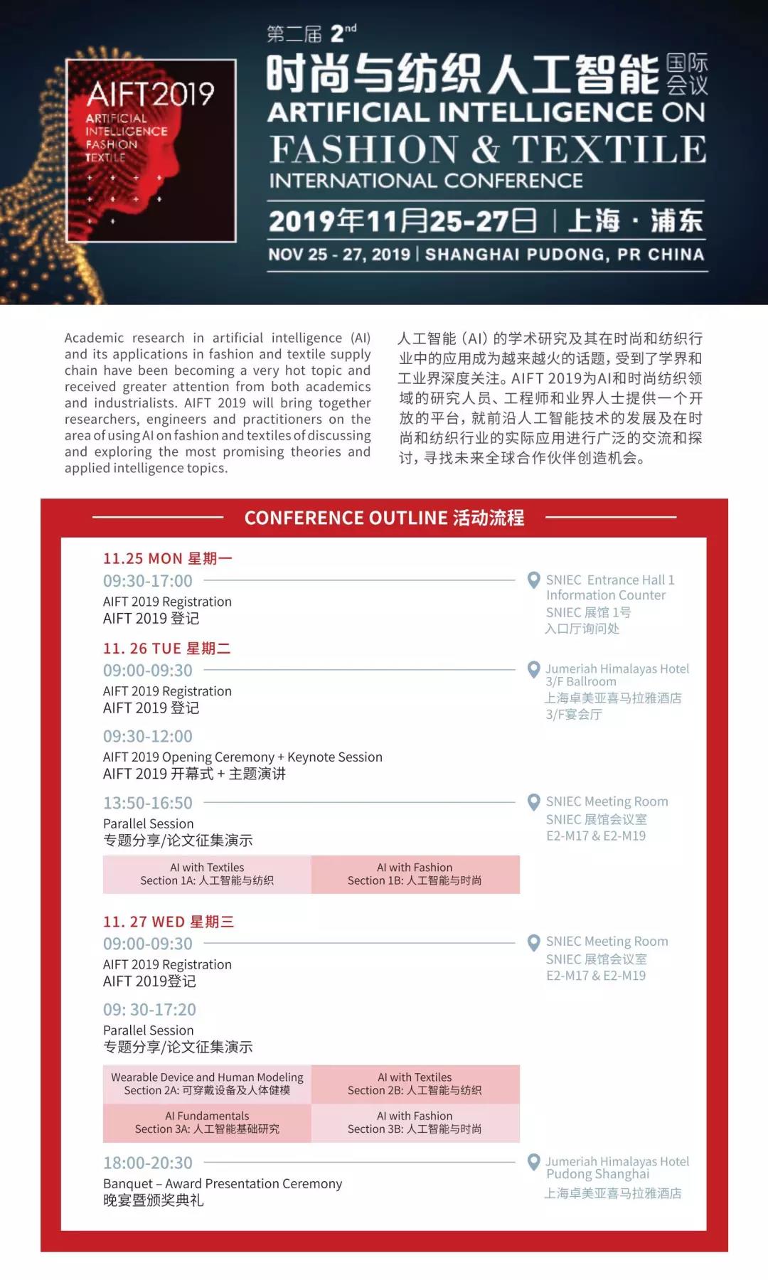 會(huì)議將于11月25-27日在上海浦東盛大舉行,屆時(shí)將召集不同業(yè)界專家,就人工智能科技在紡織及時(shí)尚領(lǐng)域的應(yīng)用進(jìn)行討論,深入探討其發(fā)展及未來的挑戰(zhàn)。