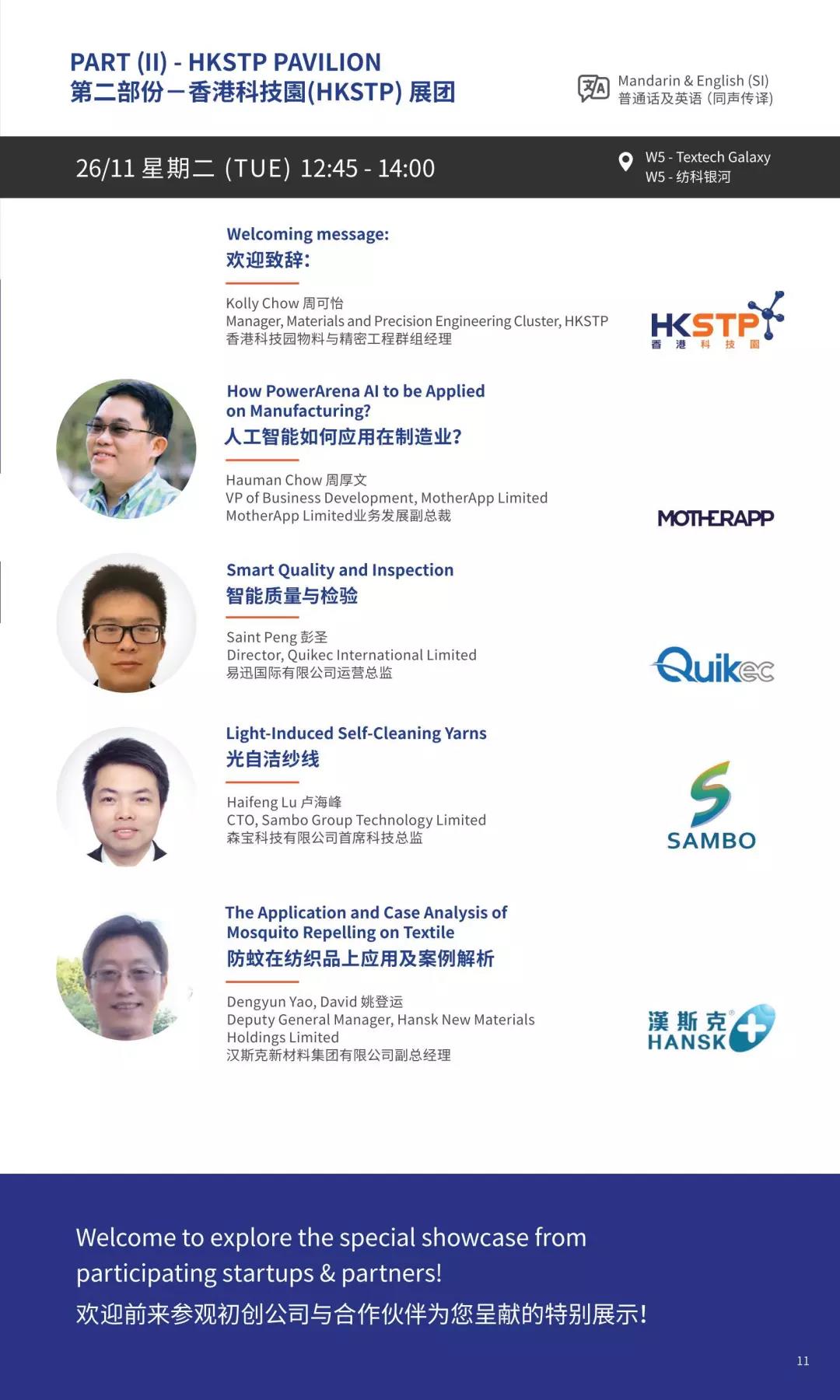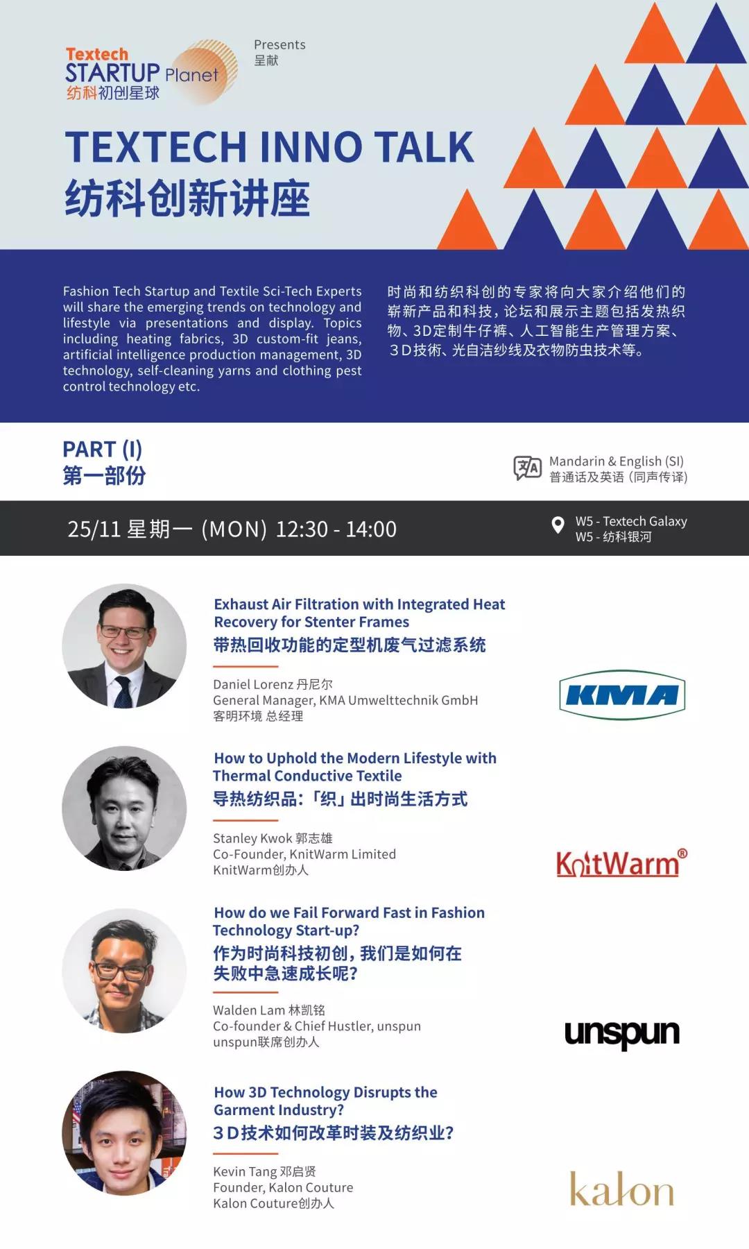 時(shí)尚和紡織科創(chuàng)的專家將向大家介紹他們的嶄新產(chǎn)品和科技,論壇和展示主題包括發(fā)熱織物、3D定制牛仔褲、人工智能生產(chǎn)管理方案、光自潔紗線及衣物防蟲技術(shù)等。