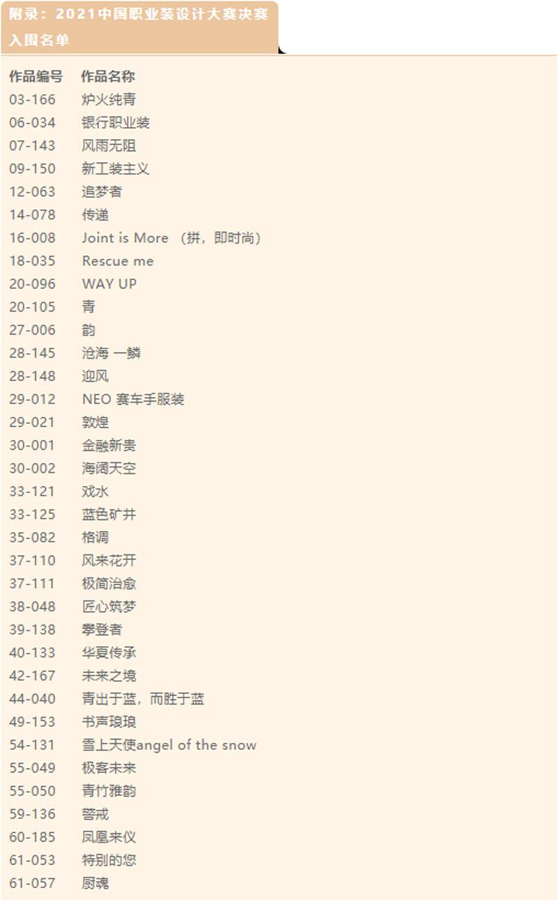 據(jù)介紹,為充分展示我國職業(yè)裝產(chǎn)業(yè)新形象,深化職業(yè)裝設(shè)計(jì)新理念,引領(lǐng)提升我國職業(yè)裝設(shè)計(jì)整體水平,中國服裝協(xié)會自4月啟動2021中國職業(yè)裝設(shè)計(jì)大賽,面向全行業(yè)進(jìn)行作品征集。截至初評前,大賽共收到64家單位、院校及個(gè)人的申報(bào)作品共211份,較去年大賽增加50%以上。其中,職業(yè)標(biāo)志服類作品177份,防護(hù)服類作品17份。