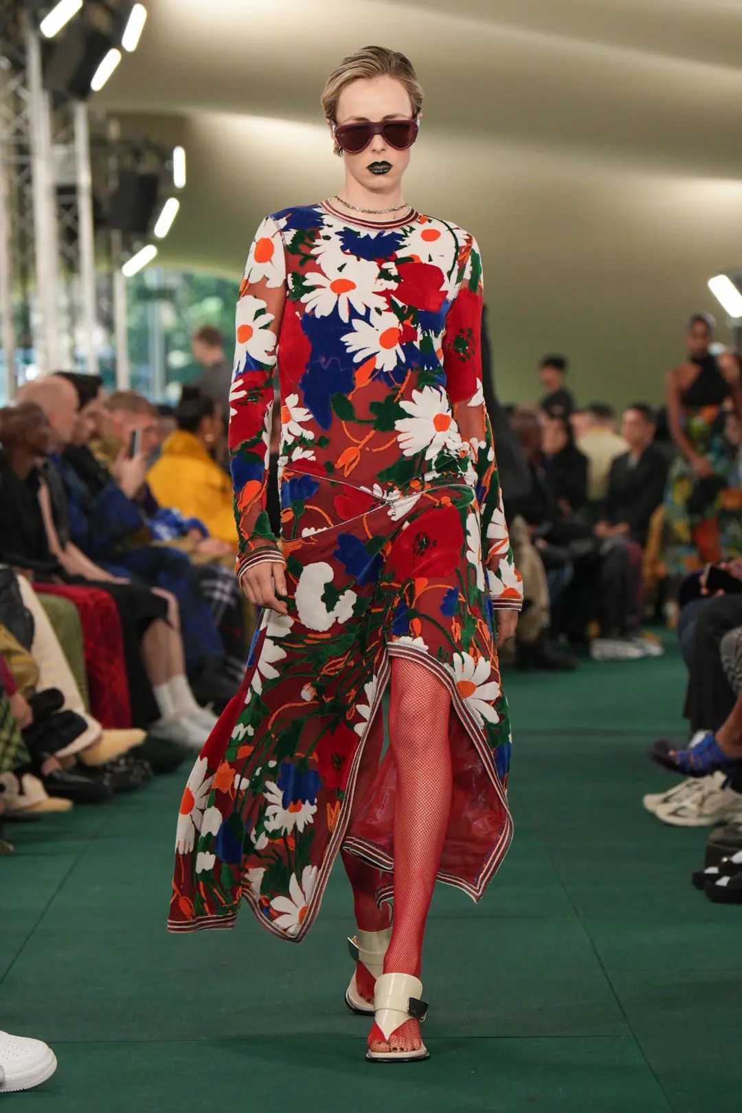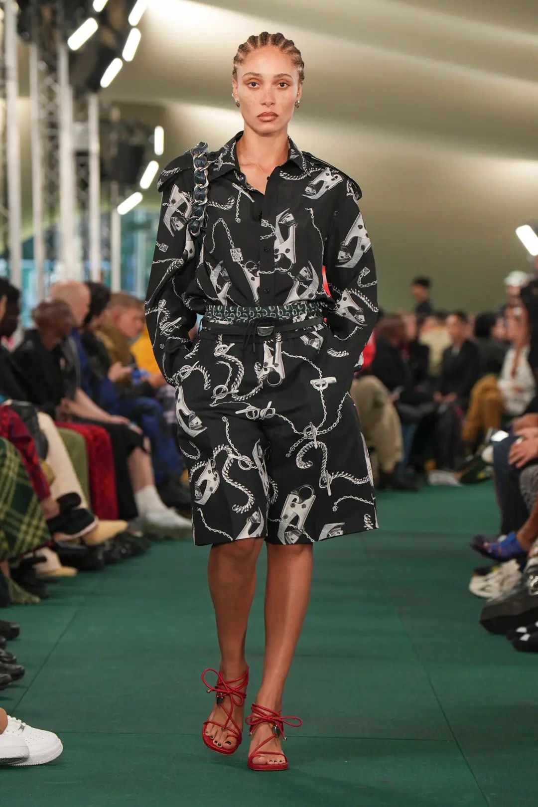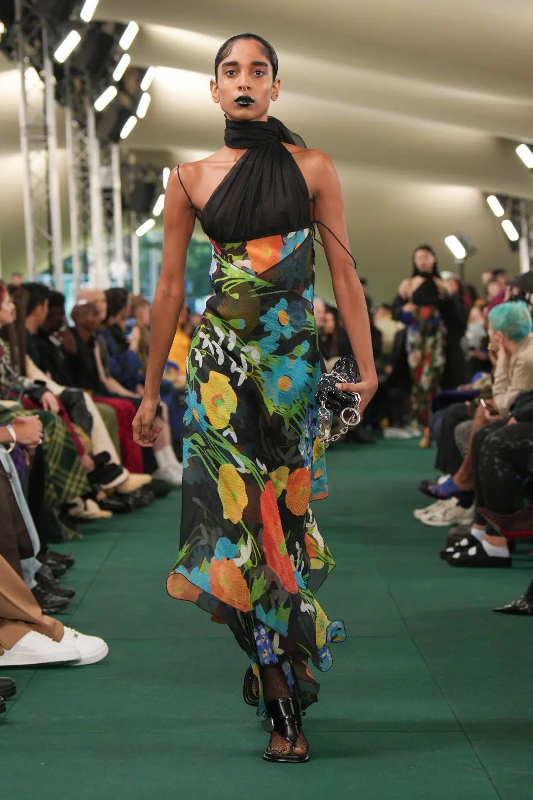這場秀在倫敦 Highbury Fields 公園舉辦,并在公園的戶外草坪上搭建起一頂綠色格紋的巨型帳篷。值得注意的是,品牌上一場秀的舉辦地也是在倫敦的一處公園,其選址表達(dá)了品牌對戶外探索的傳承。