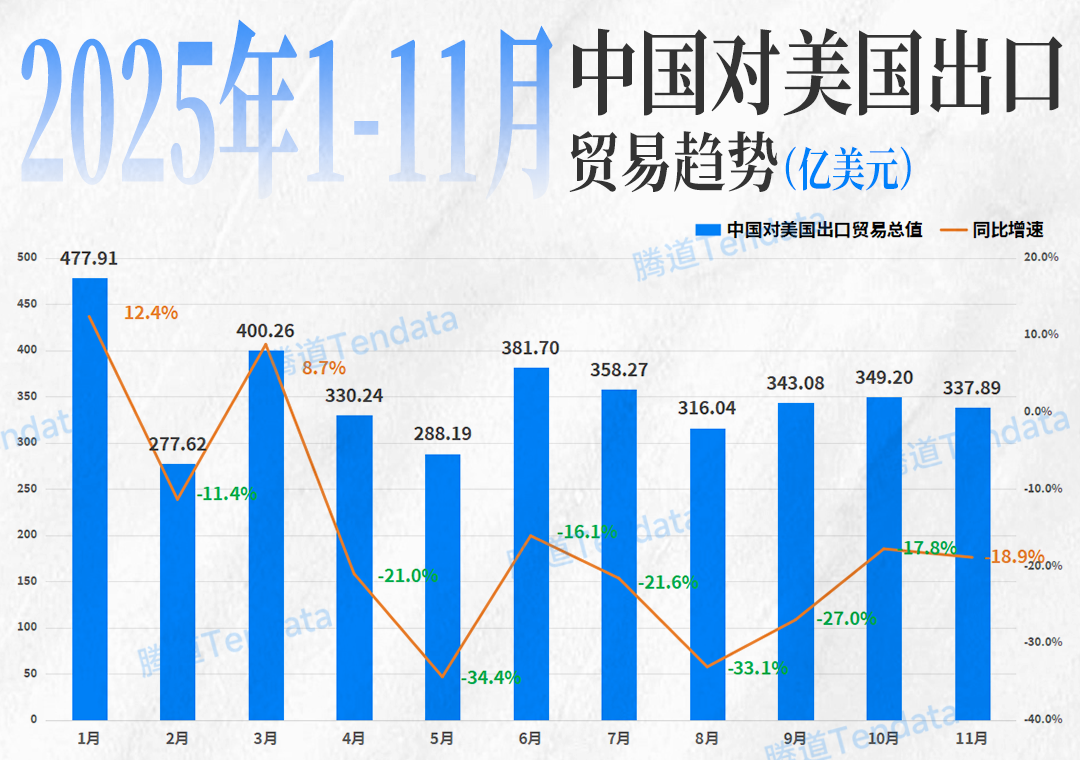 這一目標已初見成效。海關數(shù)據(jù)顯示,2025年1-11月,美國對華貨物貿(mào)易逆差為2571.52億美元,同比下降27.1%;僅11月單月,逆差就從348.85億美元降至237.36億美元,降幅達32%。