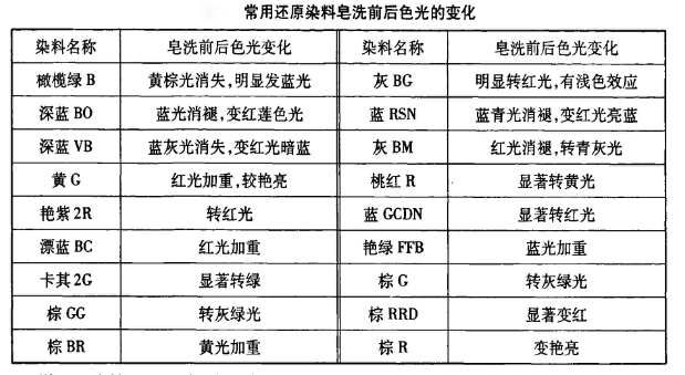 染料還原過度,會(huì)使色光顯著異變(上染率與色牢度也會(huì)同時(shí)降低)。比如還原藍(lán)RSN,過還原后其色光會(huì)嚴(yán)重變萎變暗,紅亮的藍(lán)光甚至可以完全消失。還原藍(lán)BC過還原(脫鹵)后,會(huì)由蘭光漂蘭變?yōu)榧t光寶藍(lán)(實(shí)際變成藍(lán)RSN),特別值得注意的是,這種“過還原”引起的色光變化,基本上是不可逆的,即使經(jīng)氧化也無法恢復(fù)。