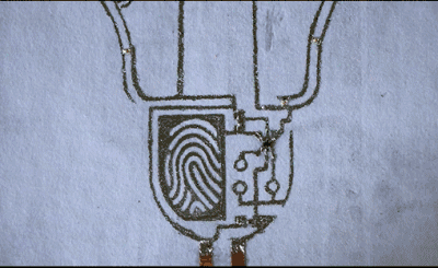 此外,在該項(xiàng)研究中研究人員使用了摻雜金屬銅微粒的半液態(tài)金屬漿料(Cu-EGaIn),這種漿料導(dǎo)電性高,且其較高的塑形能力使得電路結(jié)構(gòu)即使被拉伸或折疊也非常穩(wěn)定,使用滾輪涂布的方法即可快速黏附到PVAC膠膜上。最后,為提高液態(tài)金屬服裝電路的穩(wěn)定性和防水能力,研究人員將Ecoflex膠膜覆蓋在液態(tài)金屬電路表面,完成電路封裝。