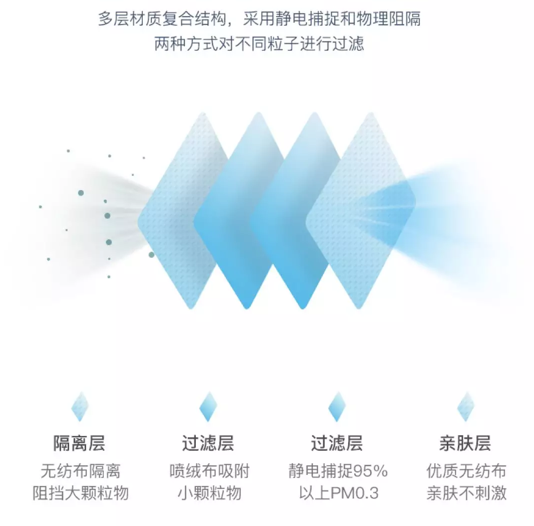 而N95級別口罩與醫(yī)用外科口罩相比,結(jié)構(gòu)上做了優(yōu)化,其核心過濾層的層數(shù)更多,甚至,3M、霍尼韋爾等生產(chǎn)商通過靜電處理來增強(qiáng)纖維的過濾能力,口罩的防護(hù)性能要更好一些。