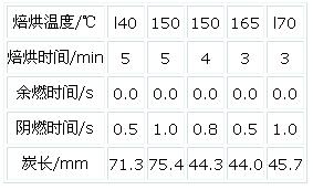 3·3阻燃劑的焙烘溫度對(duì)阻燃性能有一定的影響,最好的溫度為165℃。