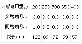 3·1阻燃劑用量對(duì)阻燃劑性能有影響,阻燃濃度最好為350-400g/L。