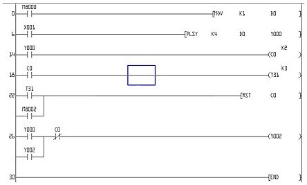 其中PLSY發(fā)脈沖指令在FX系列PLC中只能從Y0輸出,此一點(diǎn)因PLC不同而不同。