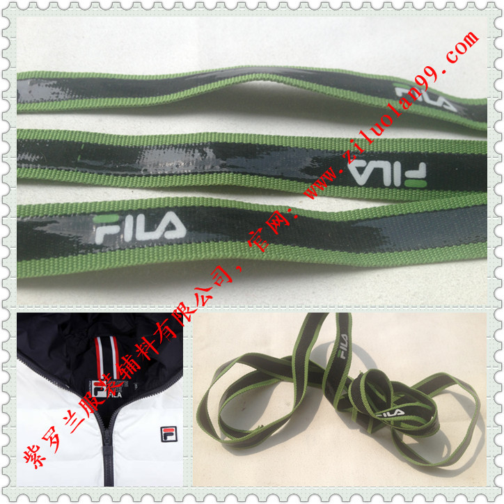 全球頂級品牌FILA(斐樂)在紫羅蘭定制掛耳類滴膠絲印織帶,具有如下特性: