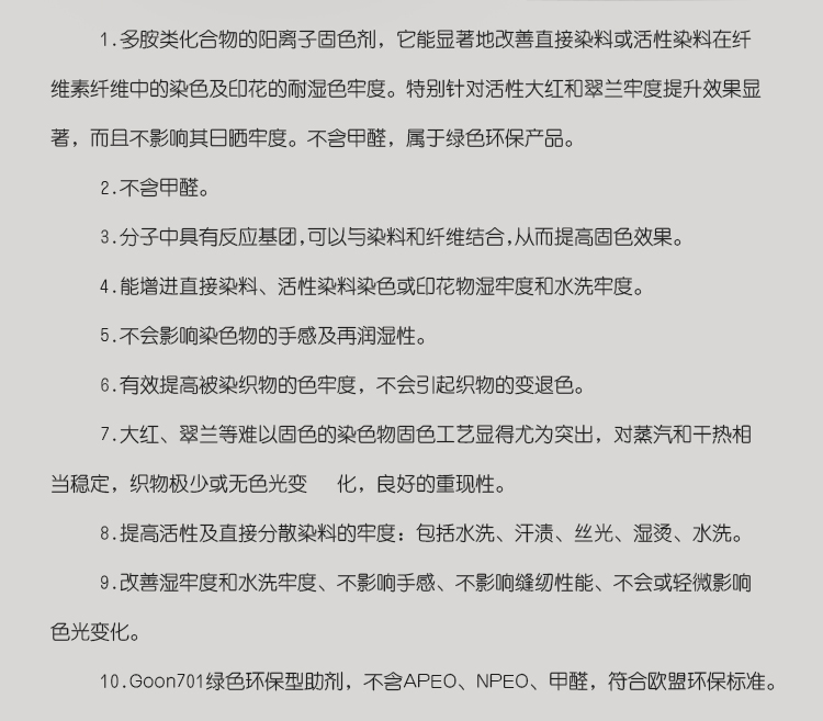 深圳紡織助劑無醛固色劑Goon701--東莞嘉宏印染助劑