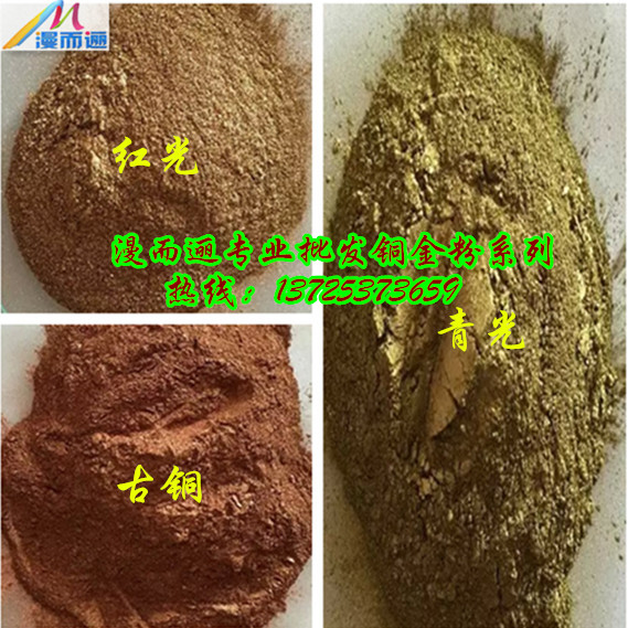 漫而邐銅金粉,按顏色分類有紅金粉、青金粉、黃金粉、古銅粉(又稱紫銅粉);按顆粒大小分類有200目、240目、400目、600目、800目、1000目、1200目、1500目、1800目。顆粒越粗越有光澤,相反顆粒細的比較暗,但遮蓋力更好,銅金粉廣泛用于包裝彩印、印染、織物印金印銀、涂料、油漆油墨、紙業(yè)、外墻漆、塑膠、皮革、工藝品等各種行業(yè)。
