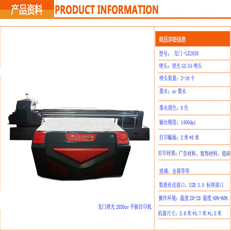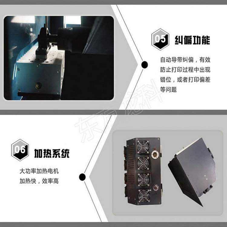 能夠在最大厚度為100mm的材料上打印,機器自動檢測介質(zhì)厚度,根據(jù)介質(zhì)厚度自動調(diào)整噴頭高度,提高生產(chǎn)的自動化程度,和圖像的輸出質(zhì)量。