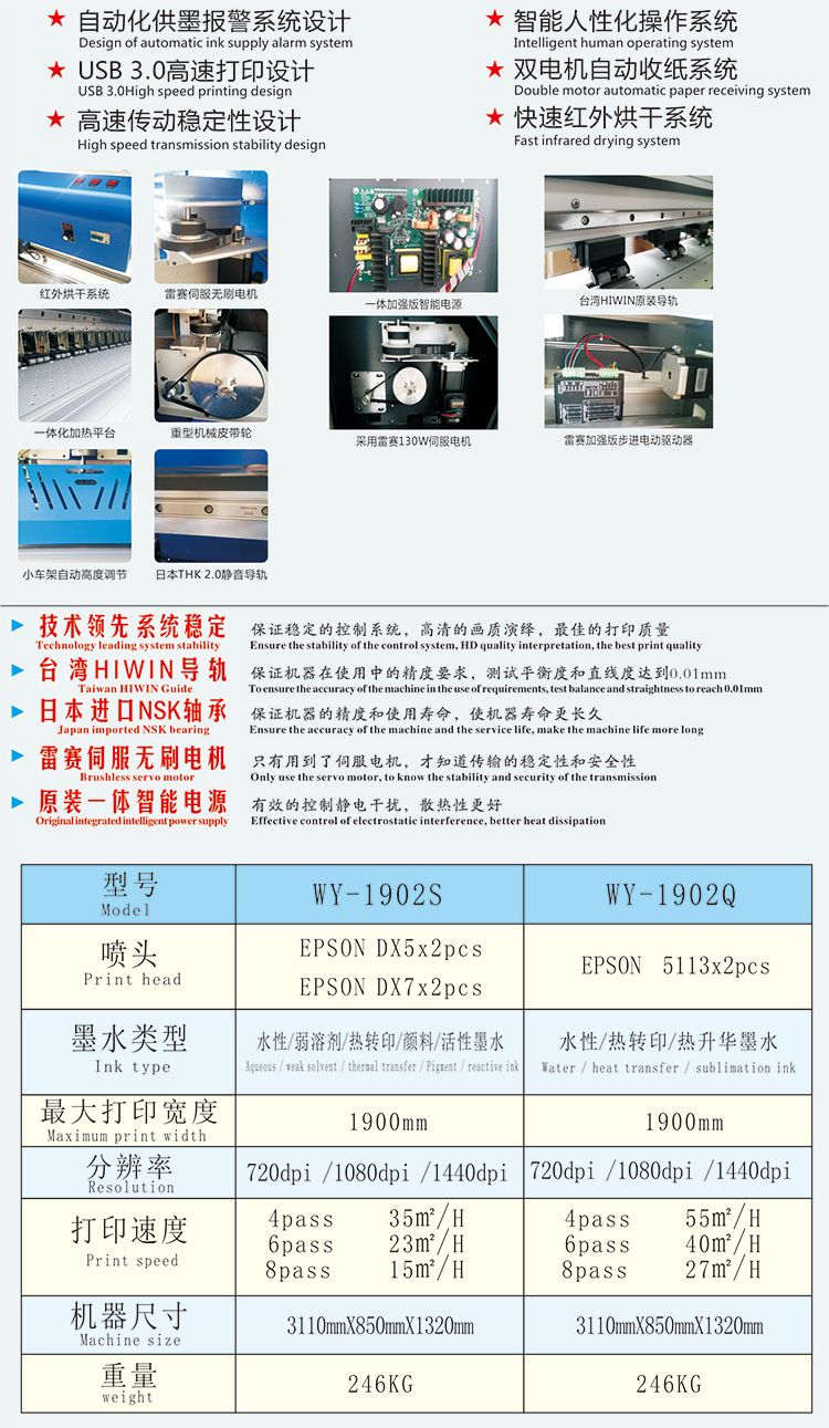 萬(wàn)宜WY-1900不僅是一款數(shù)碼印花設(shè)備,其原廠高品質(zhì)熱轉(zhuǎn)印墨水和原裝墨倉(cāng)系統(tǒng)的同時(shí)出現(xiàn)將重新定義數(shù)碼印花行業(yè)的專(zhuān)業(yè)生產(chǎn)解決方案標(biāo)準(zhǔn)。從此,高品質(zhì)不再與高生產(chǎn)成本捆綁,打印機(jī)墨路系統(tǒng)的原廠保修也不再是永遠(yuǎn)的神話,墨水的重復(fù)添加更是輕松自如......