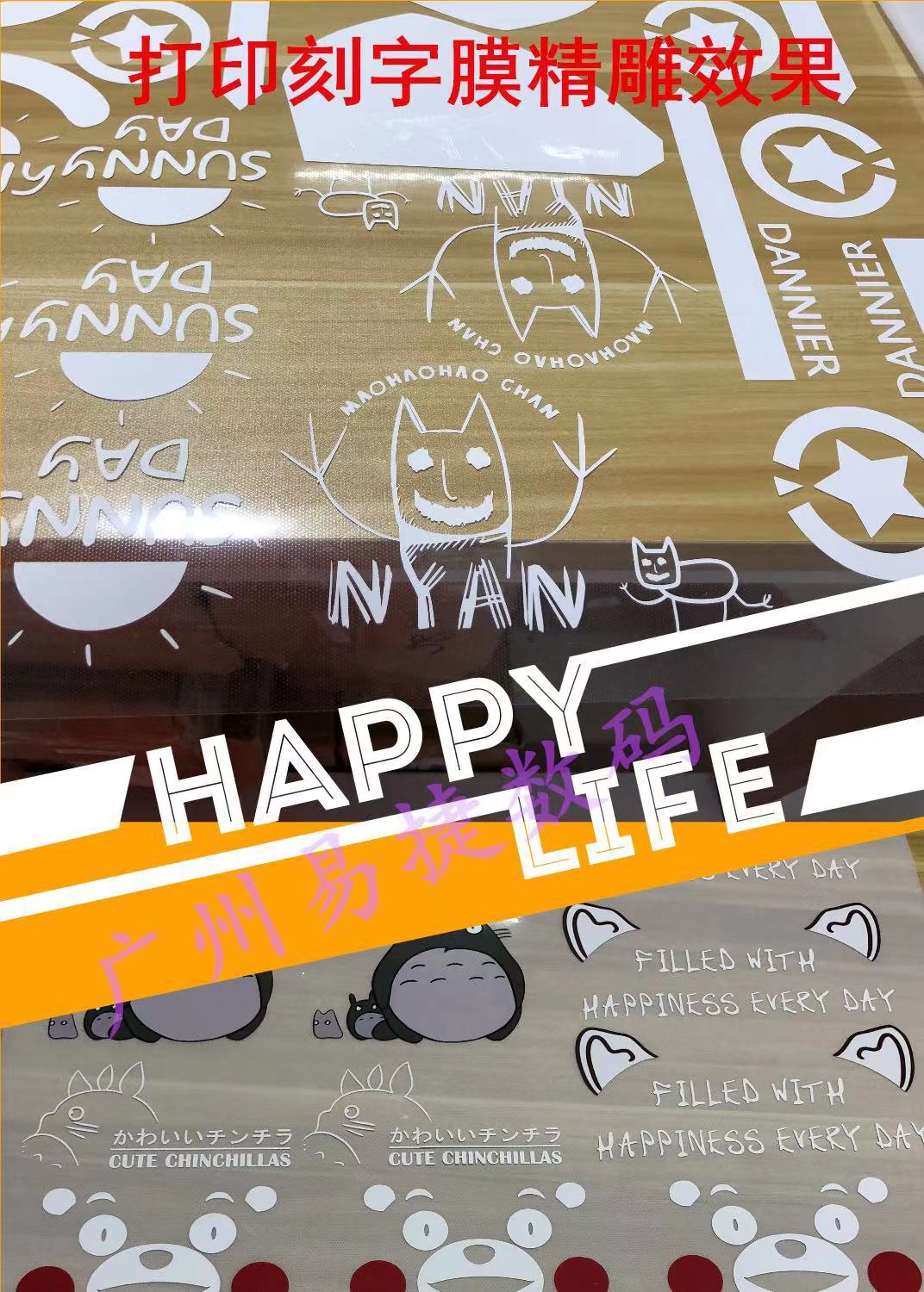 1、打印完成后,用切割機(jī)將圖案邊緣的空白部分及鏤空